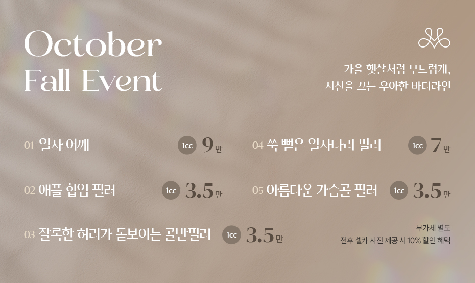 10월, 일자다리 필러 이벤트 올가을 당신의 바디라인을 완성하세요.
