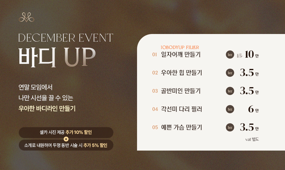 Éclane 얼굴 주사 이벤트 5가지 라인업으로 품격 있는 아름다움을 만나보세요.